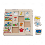 Das Sortierpuzzle „Unser Zuhause“ ist ein ideales Spielzeug, um Kindern die vielfältigen Aspekte des Wohnens näherzubringen. Jede Holzkarte zeigt Gegenstände und Elemente, die Kinder aus dem eigenen Heim kennen können, und fordert dazu auf, diese den passenden Szenen auf dem Puzzlebrett zuzuordnen.