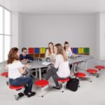 Die fahrbaren Spaceflex-Tische sind im zusammengeklappten Zustand sehr mobil und dank des praktischen Klappmechanismus ganz einfach aufzustellen. Durch die Transportsperre wird ein sicheres Hantieren ermöglicht.
