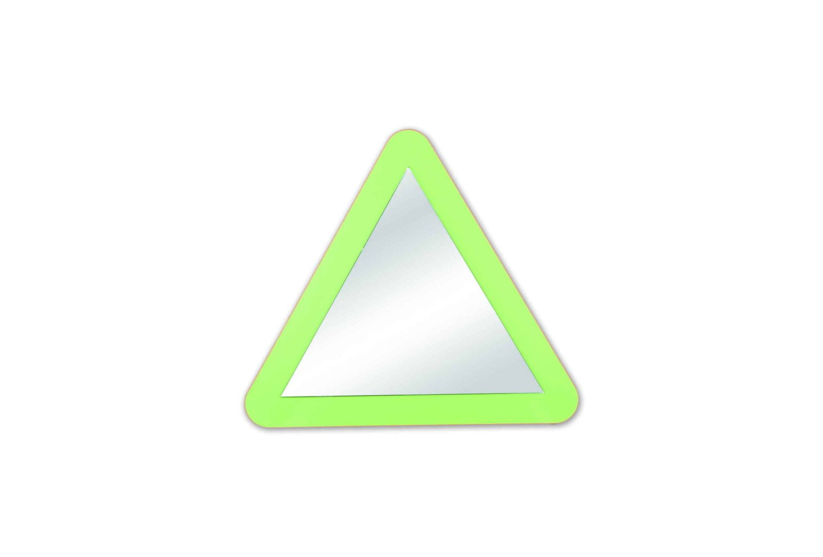 Der rahmenlose Spiegel in der Variante „Dreieck“ ist mit splitterbindender Folie hinterlegt, ringsum geschliffen und fest mit der farbigen Platte verbunden. Die Lieferung erfolgt mit Wandaufhängung und Montagematerial. Erhältlich in verschiedenen Farben.