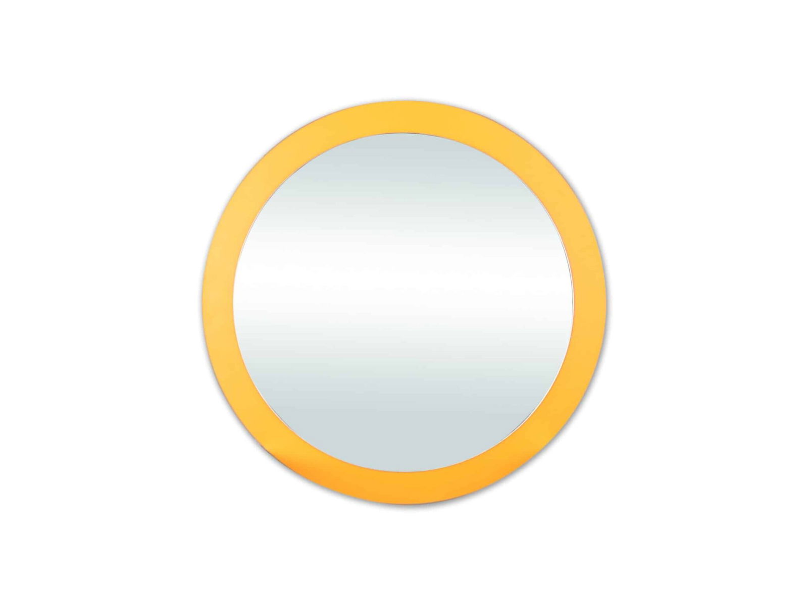 Der rahmenlose Spiegel in der Variante „Kreis“ ist mit splitterbindender Folie hinterlegt, ringsum geschliffen und fest mit der farbigen Platte verbunden. Die Lieferung erfolgt mit Wandaufhängung und Montagematerial. Erhältlich in verschiedenen Farben.