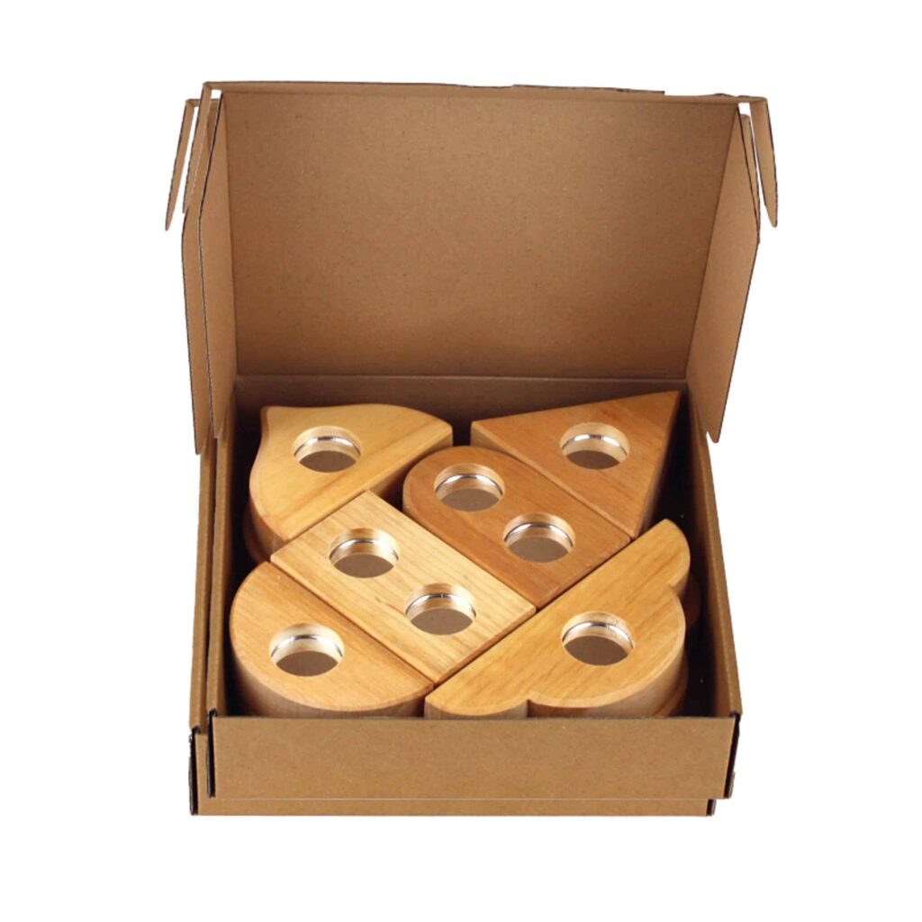 Das Set umfasst 12 Spiegelklötzchen, die in 6 verschiedenen Formen erhältlich sind – jeweils 2 Teile pro Form. Jedes Klötzchen ist mit einem oder zwei Plexiglasspiegelchen ausgestattet, die für spannendes Lichtspiel und faszinierende Reflexionen sorgen. Die Klötzchen haben eine Länge von 10 – 15 cm, eine Breite von 5 – 7 cm und eine Dicke von 2,5 cm. Diese durchdachten Maße machen sie einfach zu handhaben, während sie vielfältige Möglichkeiten für kreatives Bauen bieten.