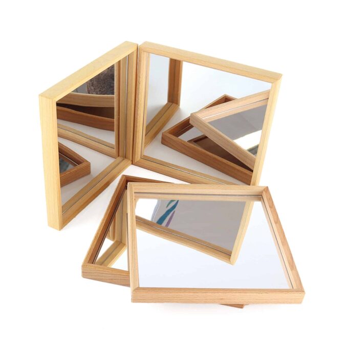 Die Spiegeltabletts bieten nicht nur eine Plattform für kreatives Gestalten, sondern auch die Möglichkeit, Symmetriegesetze anschaulich darzustellen. Indem die Kinder mit den Spiegeln spielen, können sie faszinierende Effekte kreieren, die ihre Vorstellungskraft anregen. Ob sie besondere Muster legen, Lichteffekte erzeugen oder einfach die Reflexionen im Spiegel erforschen – mit diesen Tabletts wird jeder Spielnachmittag zu einem magischen Erlebnis!