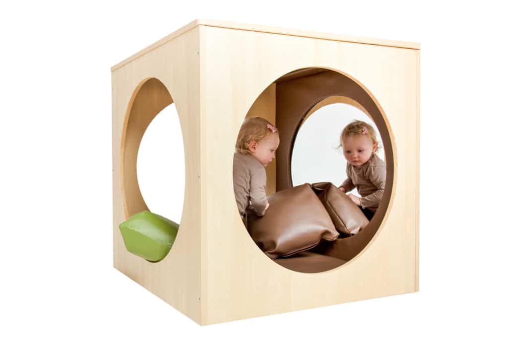 Das robuste, sichere und ästhetische Design sorgt dafür, dass dieser Spiegelwürfel sowohl pädagogischen Ansprüchen als auch den Bedürfnissen der Kinder gerecht wird. Ob im Krippenraum, in der Entdeckungsecke oder im Therapiebereich – dieses hochwertige Möbelstück lädt zum Staunen, Spielen und Entspannen ein.