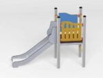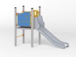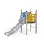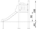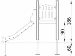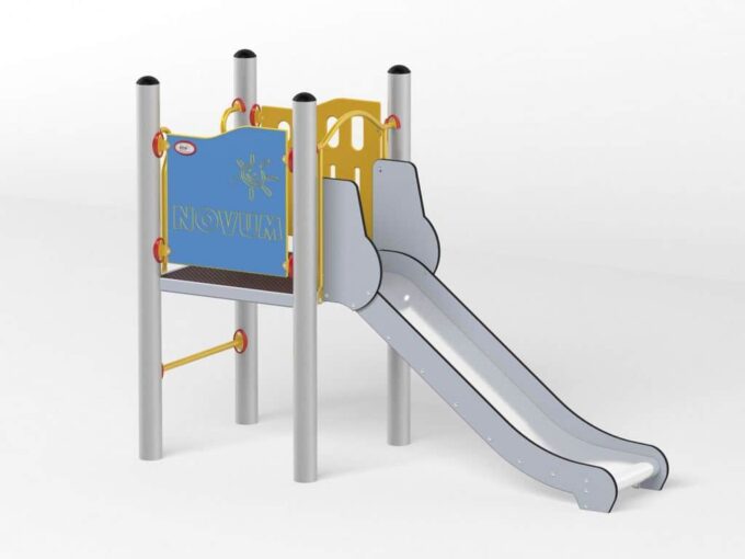 - Material: Die Tragpfosten bestehen aus runden Stahlrohren mit einem Durchmesser von 114 cm, die direkt im Boden befestigt werden. Rutschfeste Plattformen. Dächer, Sicherheitselemente und Paneele werden aus HDPE-Platten (High Durable Polyethylen) mit Musterzuschnitten hergestellt. Gleitfläche aus säurebeständigem Edelstahlblech. Seile aus Polypropylen mit Stahlkern, Stärke 16-18 mm, vandalismus- und UV-beständig. Alle Fittings und Anschlüsse sind witterungs- und UV-beständig. Stahlelemente sind durch Zinkschicht und Pulverlackierung gegen Korrosion geschützt.