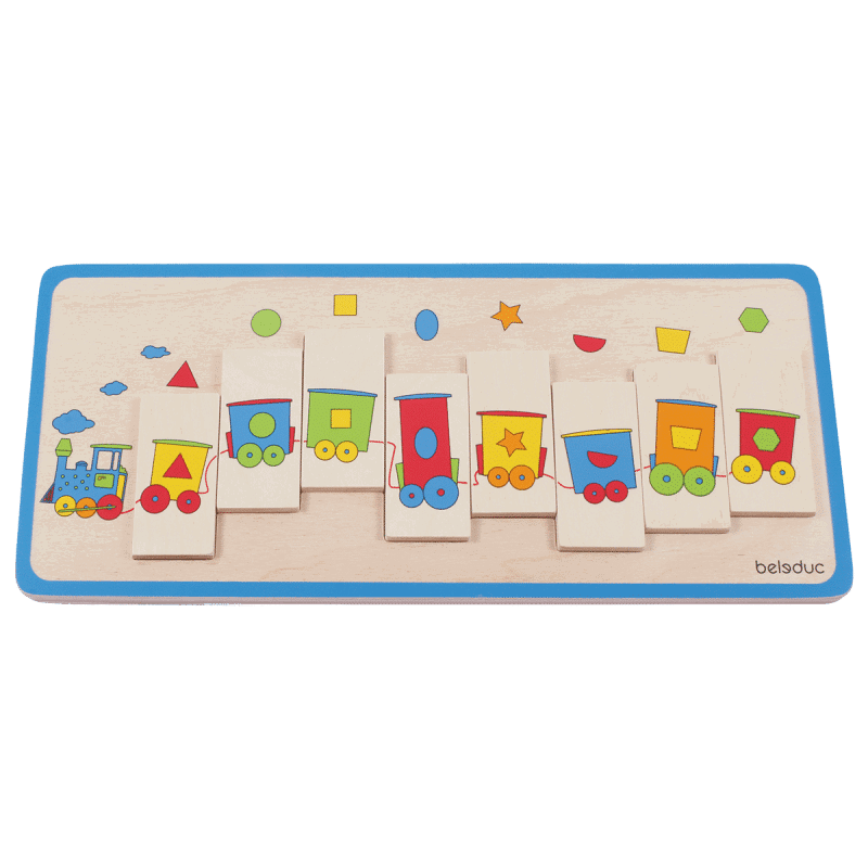 - Legepuzzle „Formenzug“ – Kreative Einführung in die Welt der Rätsel mit bunten Formen.