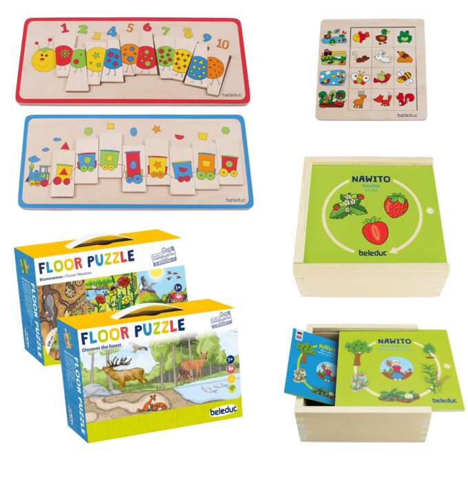 - Die verschiedenen Puzzles fördern logisches Denken, Feinmotorik und Konzentration.