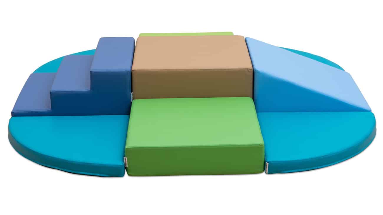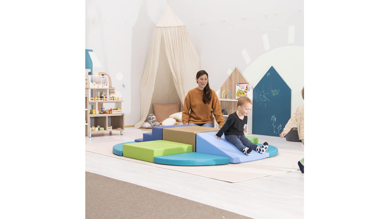 Die Betzold Spiel- und Bewegungsinsel ist die perfekte Ergänzung für jede Indoor-Spielumgebung! Mit ihrer niedrigen Bauweise ist sie ideal für Kinder von 0 bis 3 Jahren geeignet. Dieses farbenfrohe Set besteht aus 9 soften Elementen, die zu einer einladenden Insel zusammengestellt werden können. Hier können die Kleinen klettern, sitzen, rutschen und Treppen steigen – alles in sicherer Höhe!