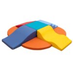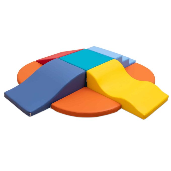 Diese Spielinsel fördert spielerisch die Beweglichkeit und Koordination der Kleinen. Die vier Viertelkreise werden sorgfältig miteinander verbunden und bieten einen sicheren Raum, in dem alle einzelnen Teile, wie die Wellen und die Treppe, fest miteinander bleiben. So wird sichergestellt, dass beim Spielen und Klettern nichts verrutscht. Kinder können mit viel Freude und Sicherheit die verschiedenen Höhen und Formen erkunden, während sie ihre motorischen Fähigkeiten weiterentwickeln.