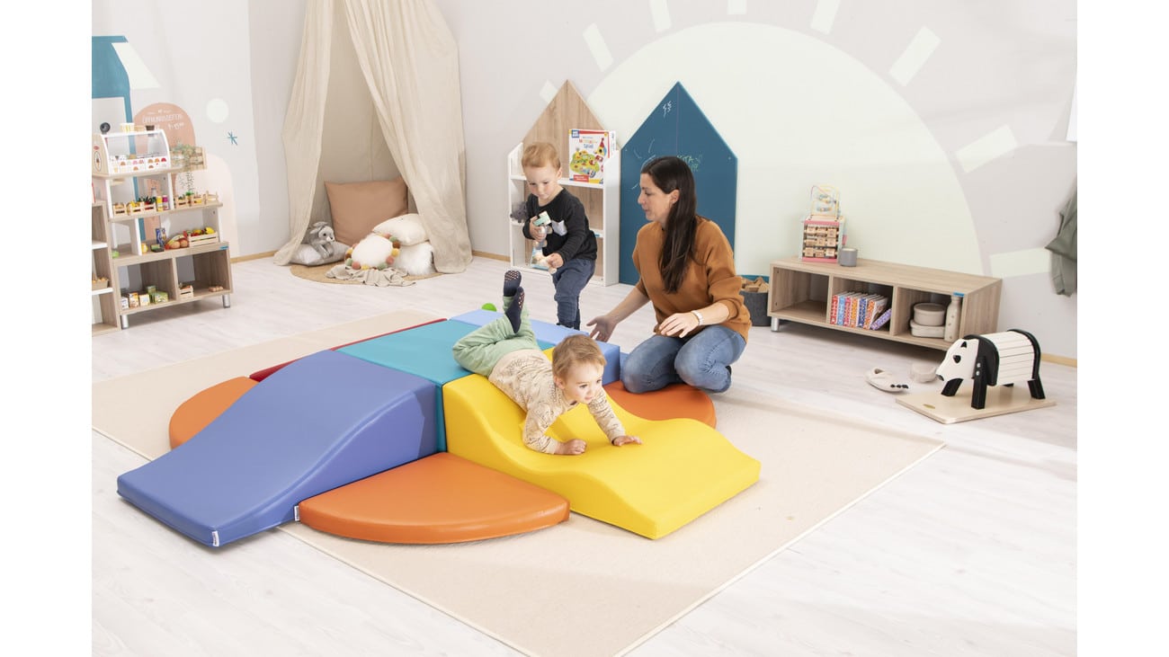 Die Betzold Spiel- und Bewegungsinsel ist das ideale Spielgerät für Kinder von 0 bis 3 Jahren. Mit ihrer bunten Gestaltung und den innovativen Wellen und Treppen lädt diese 9-teilige Insel zum Krabbeln, Klettern und Entdecken ein. Hier können kleine Abenteurer ungehindert spielen und ihre motorischen Fähigkeiten entwickeln – gerade die richtige Umgebung, um spielerisch zu lernen und sich selbstständig zu bewegen!