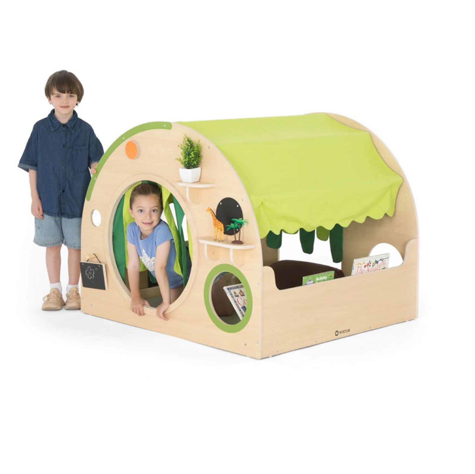 Schaffen Sie einen Ort der Geborgenheit und des Abenteuers mit der Spiel- und Lesehöhle von WISDOM. Diese einzigartige Konstruktion ist mehr als nur ein Möbelstück – sie ist ein geheimer Zufluchtsort, ein Raumschiff auf dem Weg zu fernen Galaxien oder eine gemütliche Kuschelecke für die liebsten Geschichten. Speziell für die Bedürfnisse von Kindern in Gruppenräumen konzipiert, kombiniert sie robuste Holzelemente in freundlicher Ahorn-Optik mit weichen Polstern und farbenfrohen Stoffbahnen. Ob zum Toben, Entdecken oder als ruhiger Rückzugsort – diese Höhle wird schnell zum absoluten Highlight im Raum und bietet unendliche Möglichkeiten für kreatives Spiel und Momente der Entspannung.