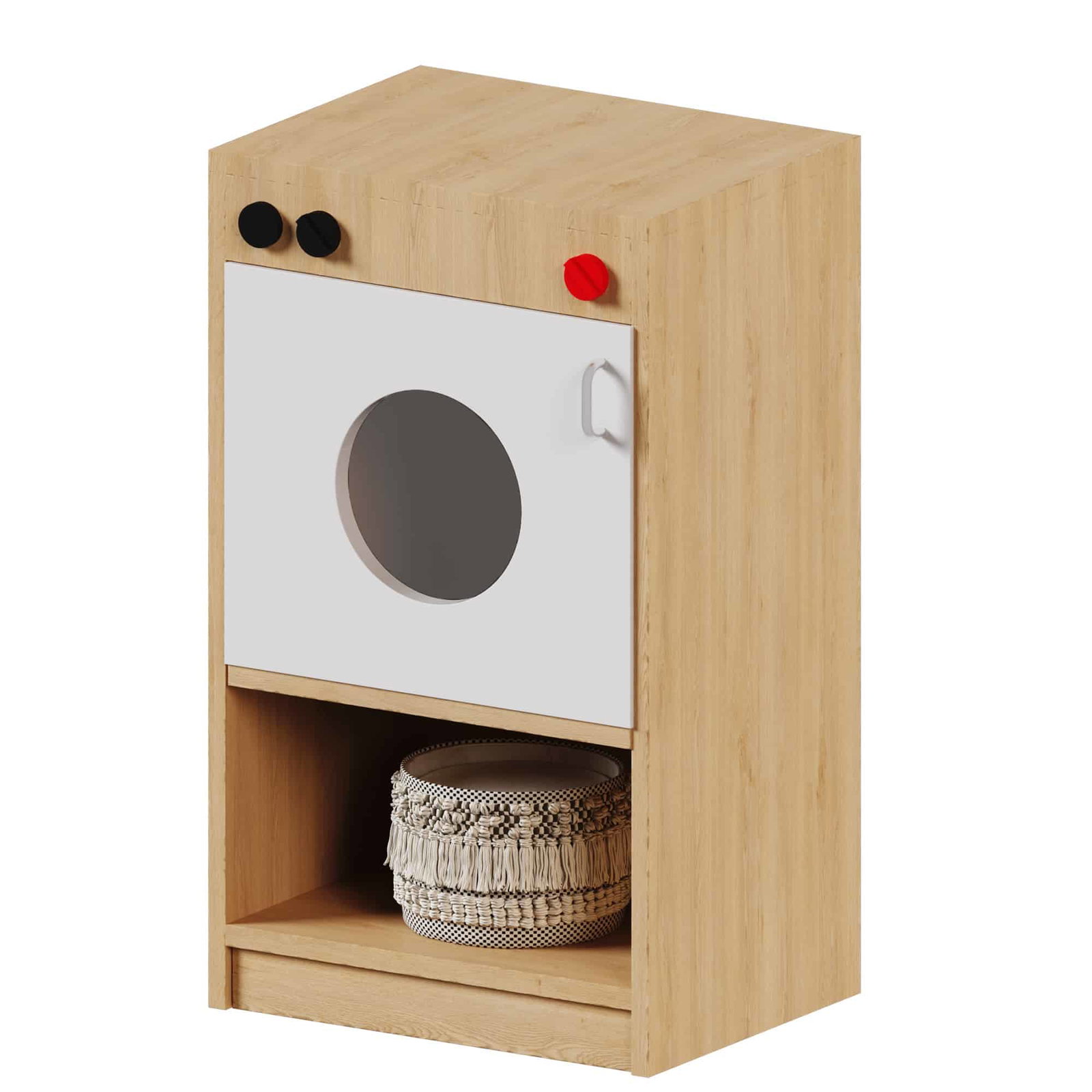 Die Spiel-Waschmaschine mit Drehknöpfen ist der perfekte Begleiter für kleine Haushaltsprofis, die mit Kreativität und Spaß in die Welt der Erwachsenen eintauchen möchten. Mit ihrem realistischen Design, liebevollen Details und funktionalen Komponenten wie drehbaren Knöpfen und Stauraum sorgt diese hochwertige Kinderwaschmaschine für stundenlangen Spielspaß. Dank ihres robusten Aufbaus aus melaminharzbeschichteter Spanplatte und des markanten Acrylglas-Fensters verbindet sie Langlebigkeit mit authentischem Spielwert. Ob im Kindergarten, der Krippe oder im heimischen Spielzimmer, die Spiel-Waschmaschine lädt Kinder dazu ein, Verantwortung und praktische Fähigkeiten spielerisch zu erforschen.