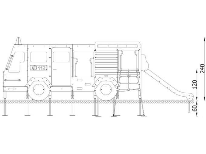 Das Feuerwehrauto-Set ist eine echte Attraktion für alle Kinder, die vom Feuerwehrberuf träumen. An den Seiten des Autos wurde eine Notrufnummer eingraviert, die den Kindern hilft, sich daran zu erinnern. Das Set enthält 12 quadratische Plattformen, Edelstahlrutsche, Bogeneingang, Kletterwand mit Loch, Seileinstieg und 4 kurze Handläufe. Es ist für eine Gruppe von 28 Benutzern gedacht und eignet sich daher perfekt für Kindergärten und Spielplätze.