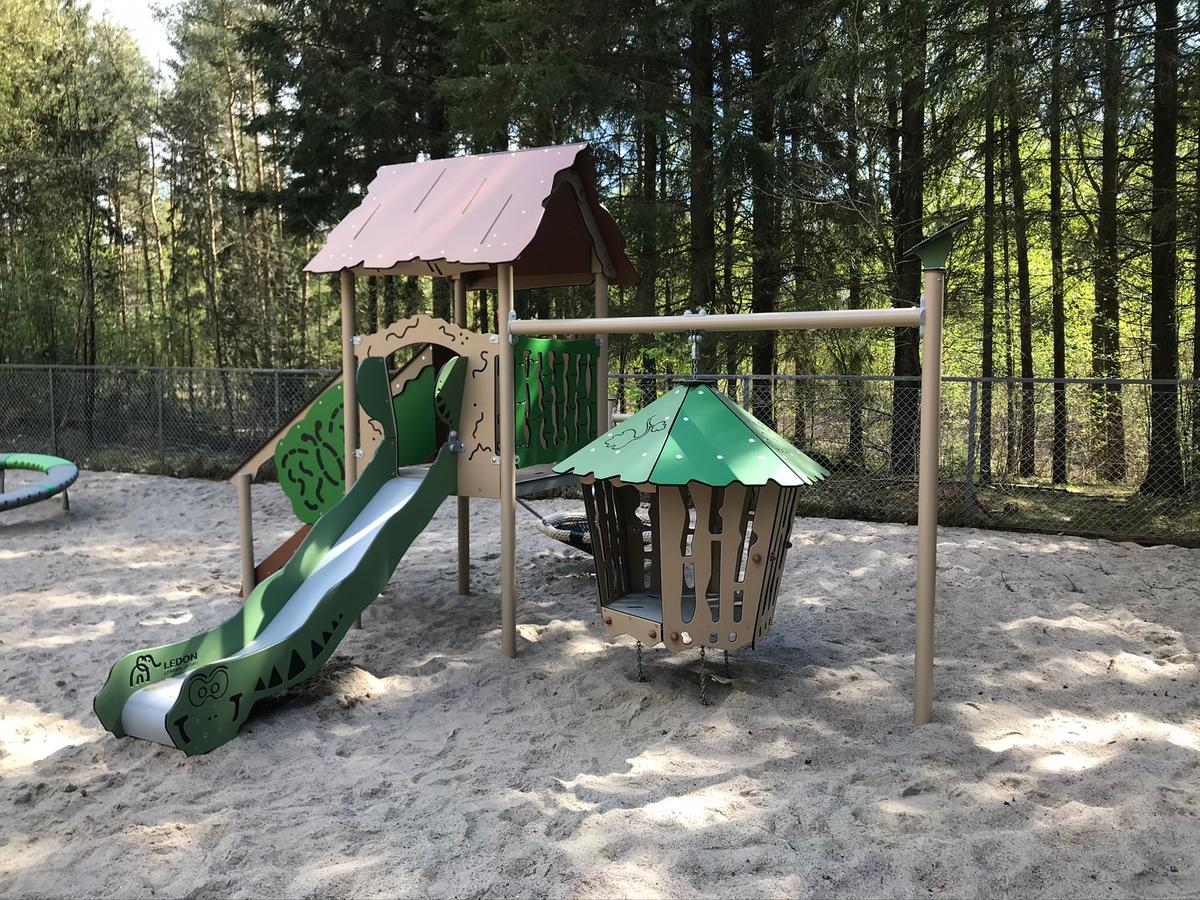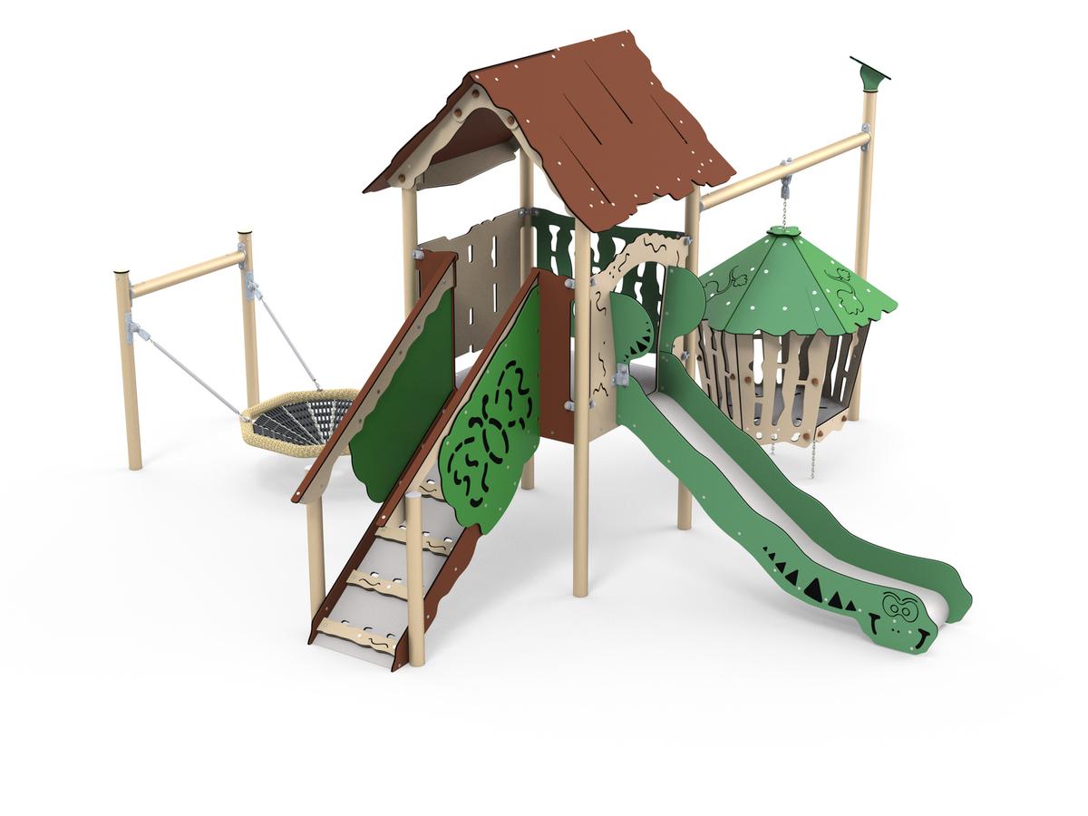 Spielanlage Hanok – inkl. Nestschaukel & schwingender Hütte – LEDON Explore – EX113 für Kindergarten- Außenanlagen