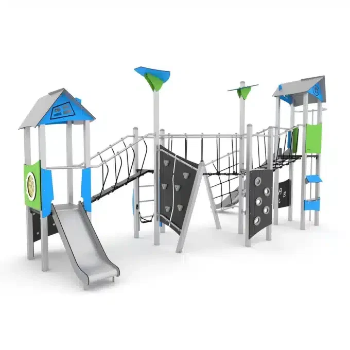 Spielanlage mit 2 Rutschen, Brücken und Kletterelementen – STEEL+ 1711 von Vinci Play – Das Top-Abenteuer für kleine Entdecker!