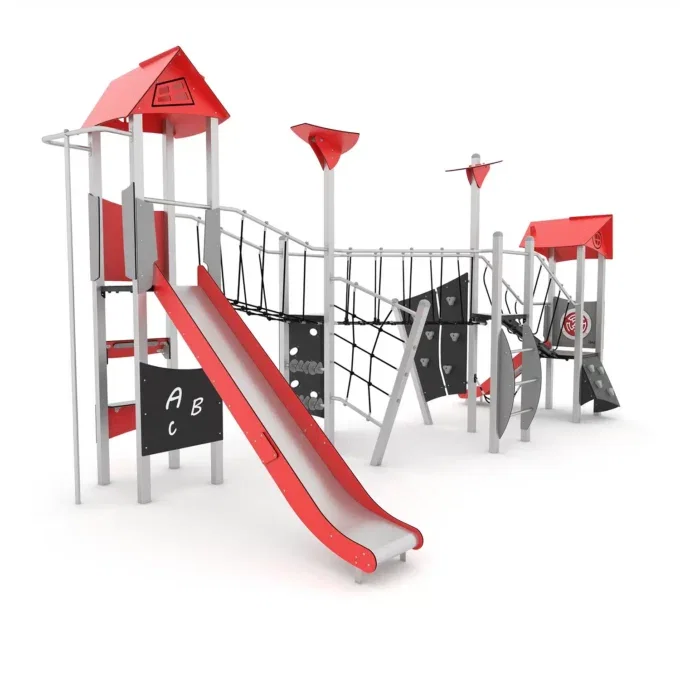 - Abwechslungsreicher Spielspaß: Die STEEL+ 1711 begeistert durch eine Kombination aus zwei Rutschen, stabilen Brücken und herausfordernden Kletterelementen. Ob beim Rutschen, Balancieren auf der Brücke oder beim Klettern an den Wänden – diese Spielanlage fördert die motorischen Fähigkeiten, Das Gleichgewicht und die Teamarbeit der Kinder auf spielerische Art und Weise.