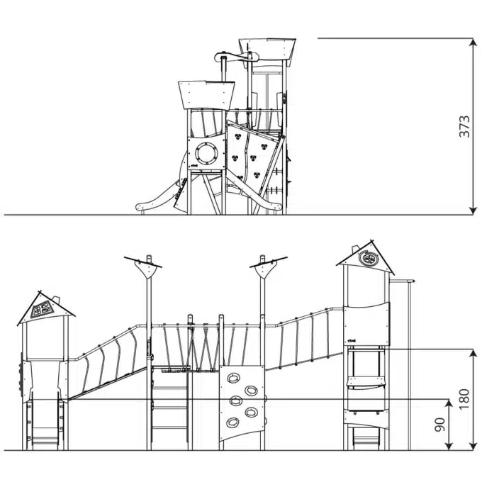- Höhe Rutschenplattform: 90 cm, 180 cm