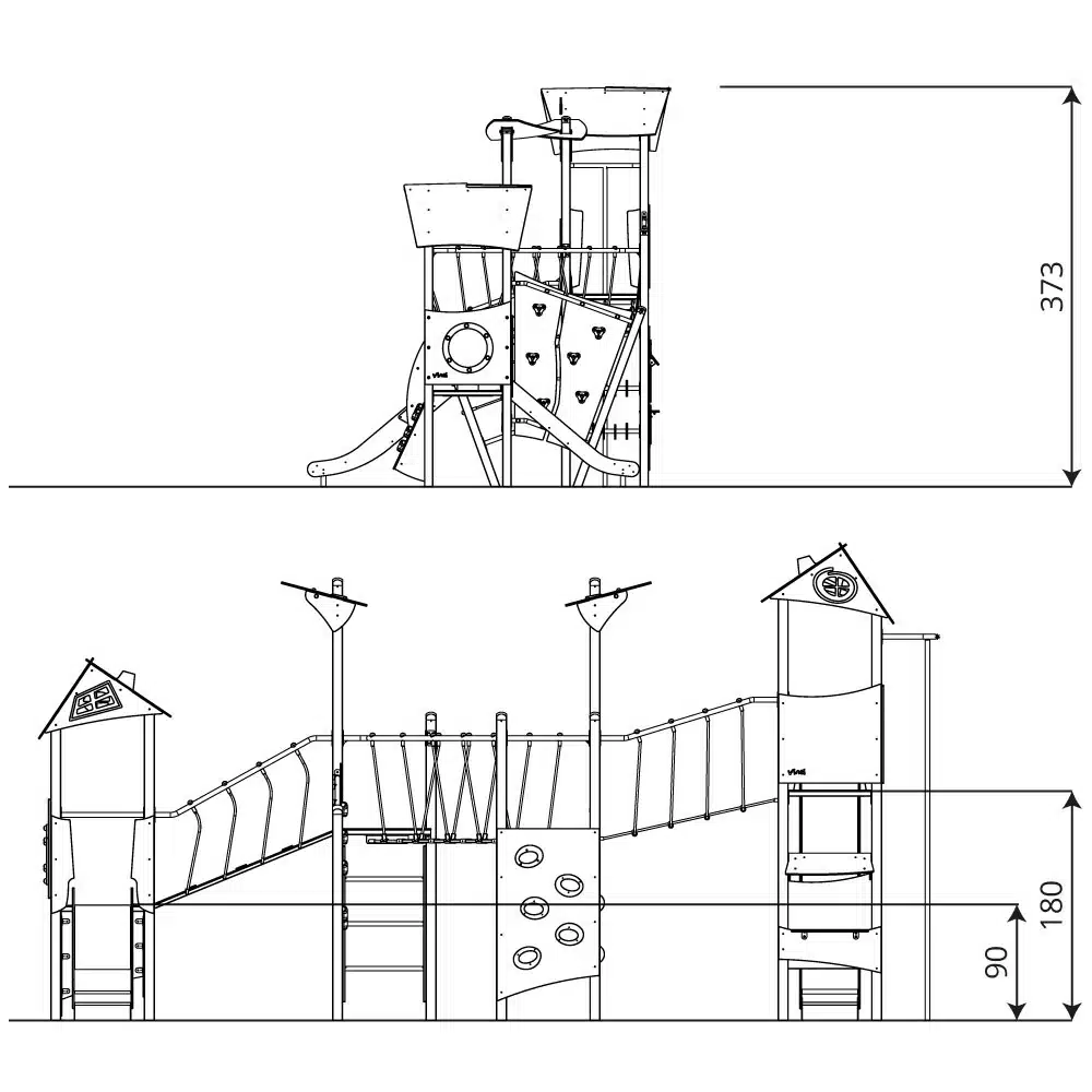 - Hochwertige, langlebige Materialien: Hergestellt aus einer stabilen feuerverzinkten und pulverbeschichteten Stahlkonstruktion mit einem Profil von 80 x 80 mm, überzeugt die Spielanlage durch Langlebigkeit und Witterungsbeständigkeit. Die rutschfesten und wasserfesten HPL-Platten der Podeste und Kletterwände garantieren Sicherheit und Stabilität bei jedem Wetter.