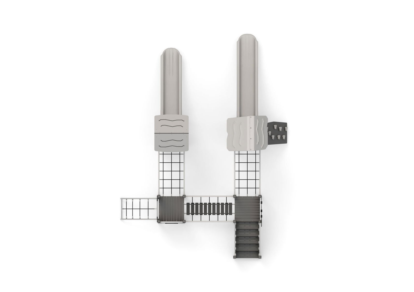 - Ein riesiger sozialer Treffpunkt: Mit einer enormen Kapazität für bis zu 32 Kinder wird diese Spielanlage zum pulsierenden Herzen des Spielplatzes. Die vernetzte Struktur mit ihren zwei unterschiedlichen Brücken schafft unzählige Laufwege und Begegnungspunkte. Kinder können sich gegenseitig über die Brücken jagen, gemeinsam rutschen oder an den Spielwänden kooperieren. Dies fördert auf natürliche Weise die Kommunikation, den Teamgeist und das Erlernen sozialer Regeln.