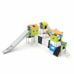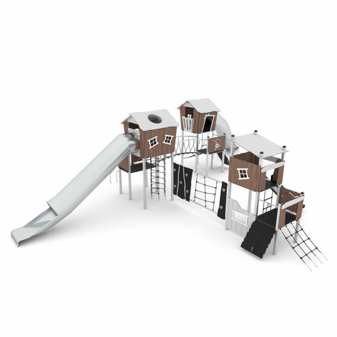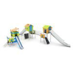 Technische Daten Spielanlage mit 6 Spieltürmen, Rutsche, 2 Röhrenrutschen und Kletterelementen CROOC 0302 von Vinci Play