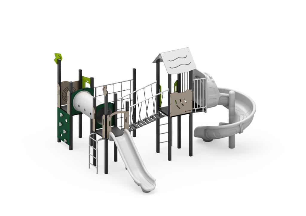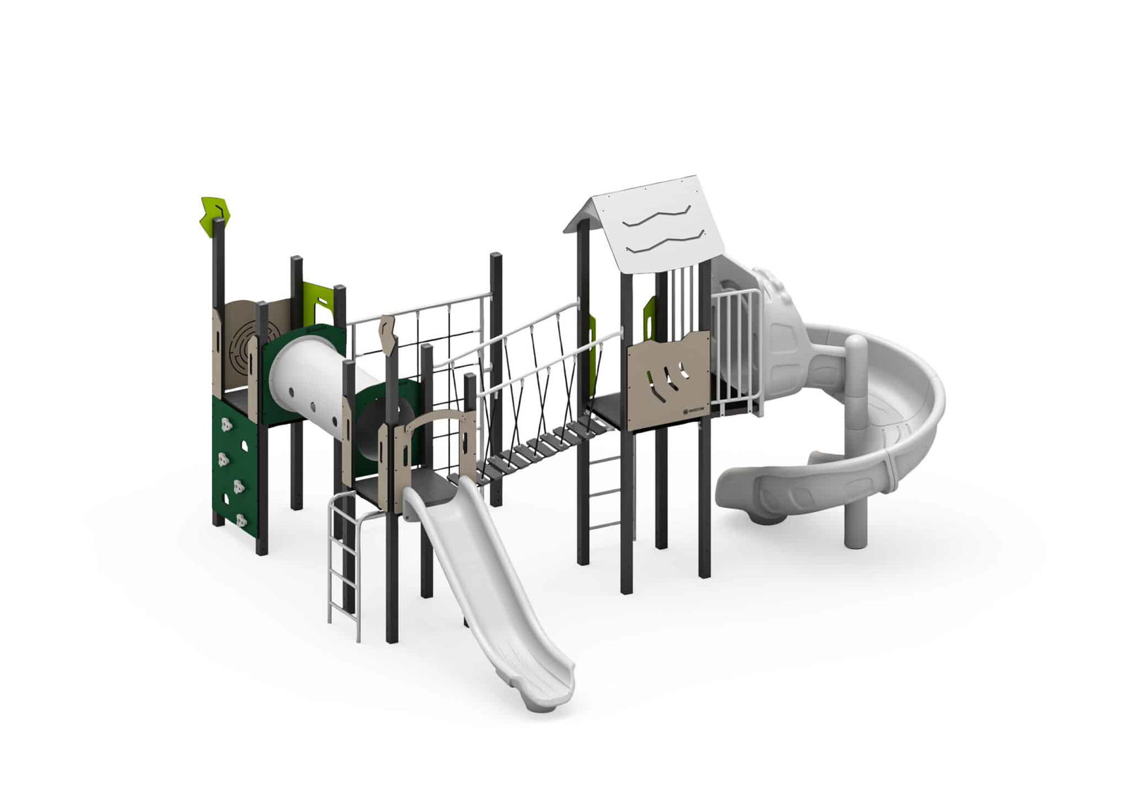 - Ein Zentrum für soziale Interaktion: Mit einer Kapazität für bis zu 21 Kinder wird diese Anlage schnell zum Mittelpunkt des sozialen Lebens auf dem Spielplatz. Die verschiedenen Elemente fördern das Miteinander. Die Brücke wird zum Treffpunkt, die Spiralrutsche zum gemeinsamen Nervenkitzel. Kinder lernen hier, sich abzuwechseln, sich gegenseitig zu helfen und gemeinsame Spiele zu erfinden. Die Labyrinth-Spielwand bietet zudem eine tolle Möglichkeit für eine ruhigere, interaktive Pause zu zweit.
