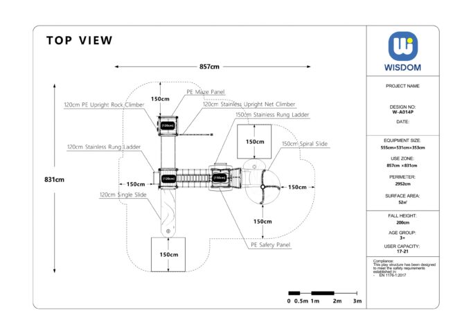 - Zertifizierte Sicherheit für anspruchsvolle Abenteuer (TÜV Süd): Trotz der herausfordernden Elemente wie der hohen Kletteraufstiege und einer Fallhöhe von bis zu 200 cm hat die Sicherheit oberste Priorität. Die gesamte Anlage ist vom TÜV Süd nach der strengen europäischen Norm EN 1176 zertifiziert. Rutschfeste WPC-Podestbeläge, stabile Handläufe, abgerundete Kanten und eine massive Bauweise aller Komponenten schaffen ein sicheres Umfeld, in dem Kinder frei und unbeschwert ihre Grenzen austesten können.