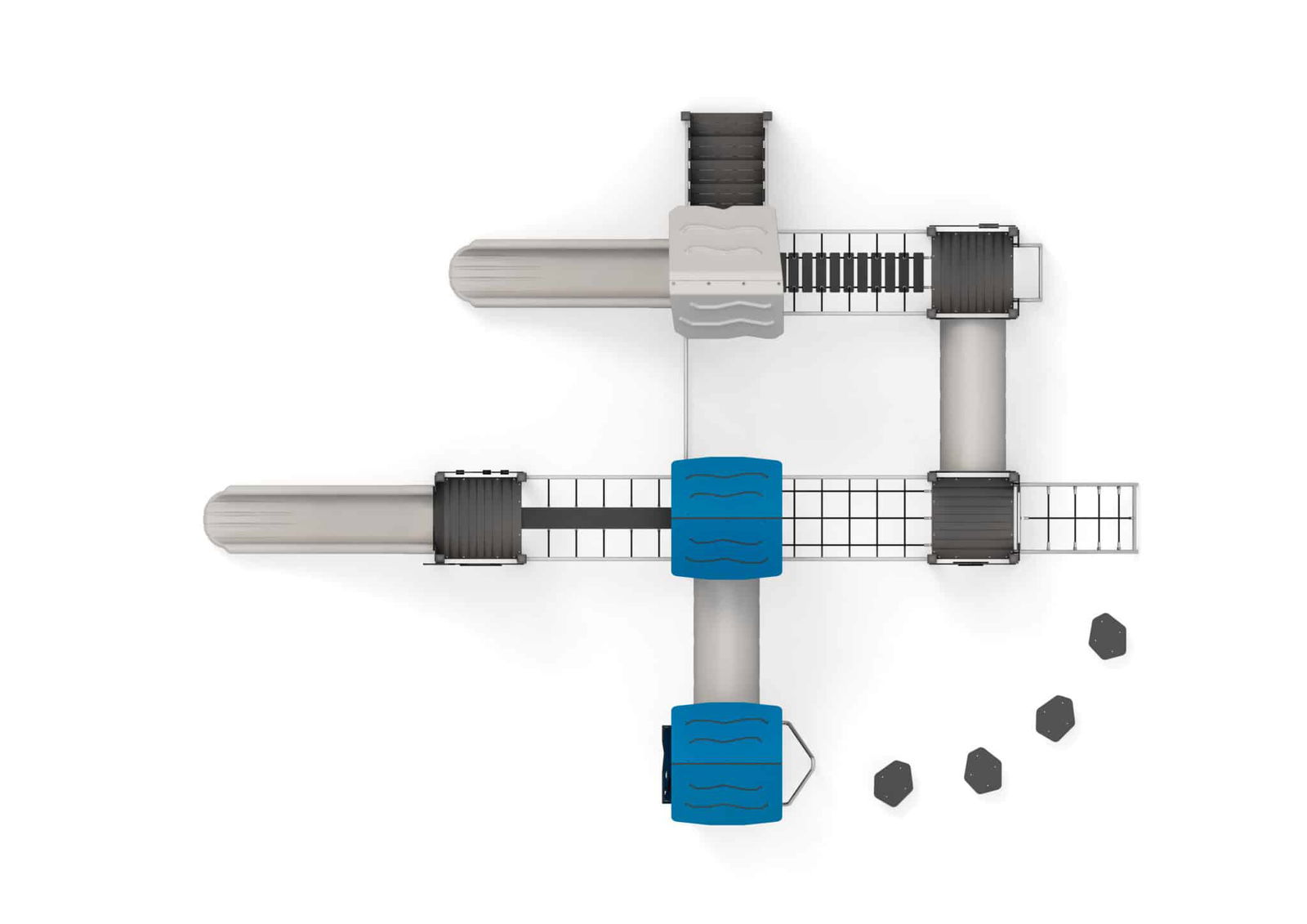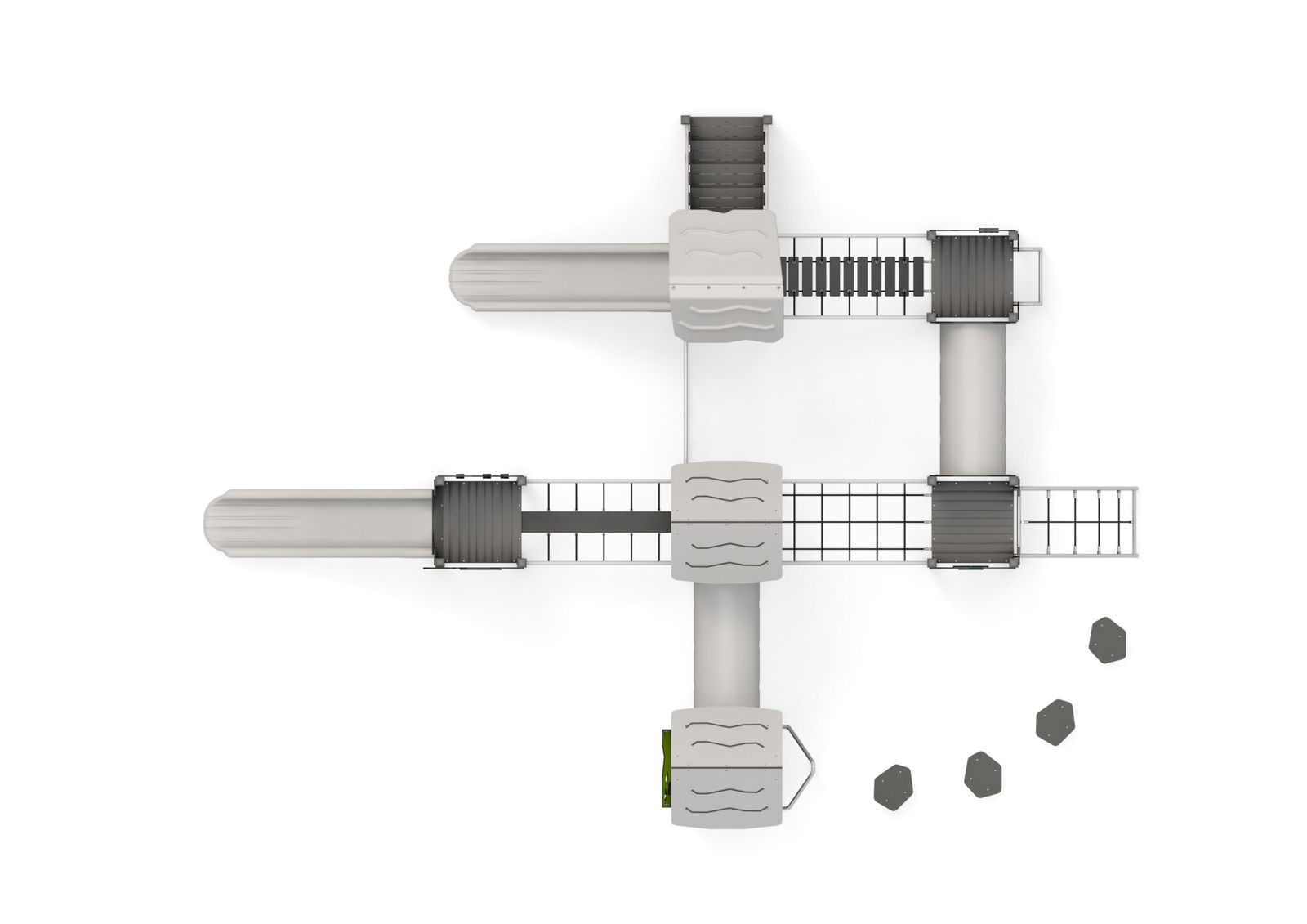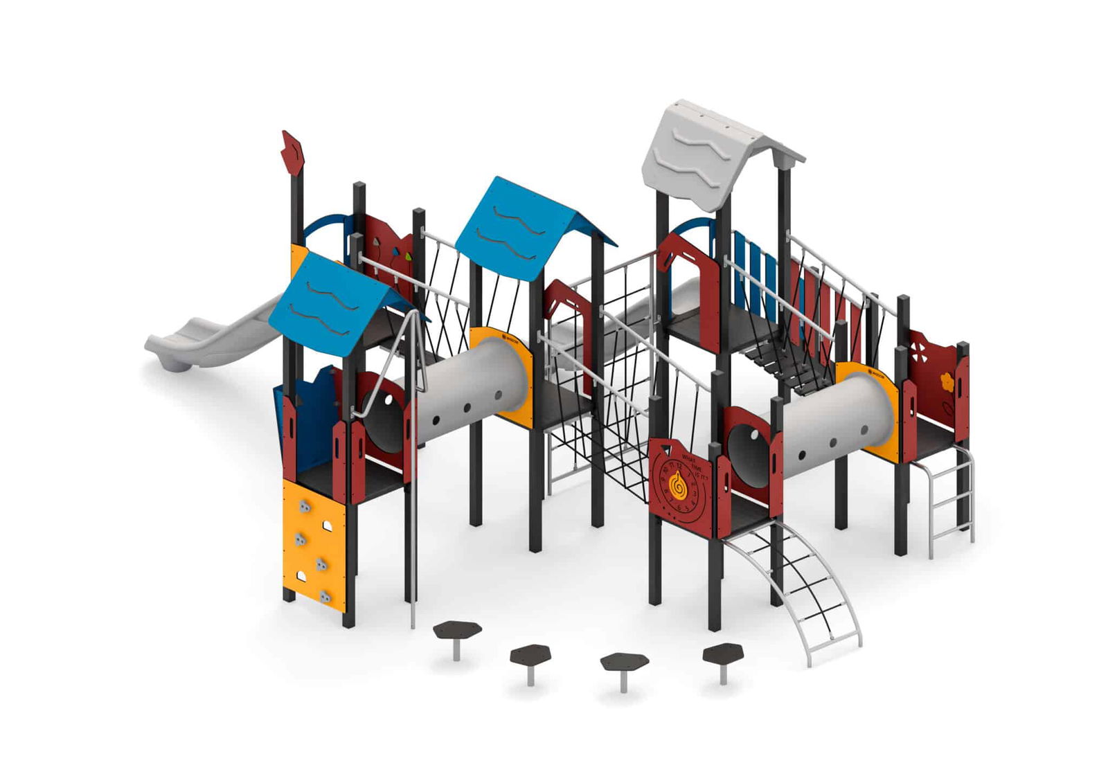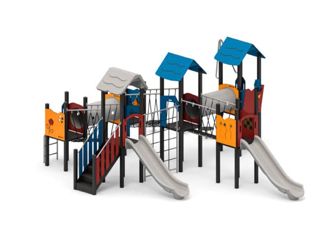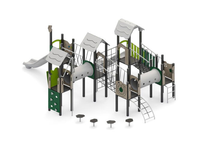 - Produktname: Spielanlage mit Rutschen, Kriechtunnel, Kletterelementen und Spielwänden