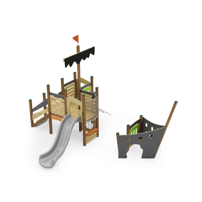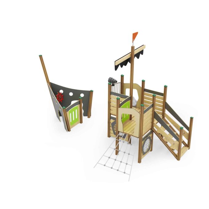 Lassen Sie die Herzen Ihrer kleinen Abenteurer höher schlagen mit unserem beeindruckenden Segelschiff „Berlin“! Dieses vielseitige Spielgerät lädt Kinder ein, ihre Vorstellungskraft zu entfalten und aufregende Geschichten zu erleben – sei es auf einer Weltumsegelung oder bei der spannenden Jagd nach dem verschwundenen Piratenschatz. Mit einem Kletternetz, einer Rutsche, einem Fernrohr und einem Steuerrad bietet die „Berlin“ ein umfassendes und mitreißendes Spielerlebnis.