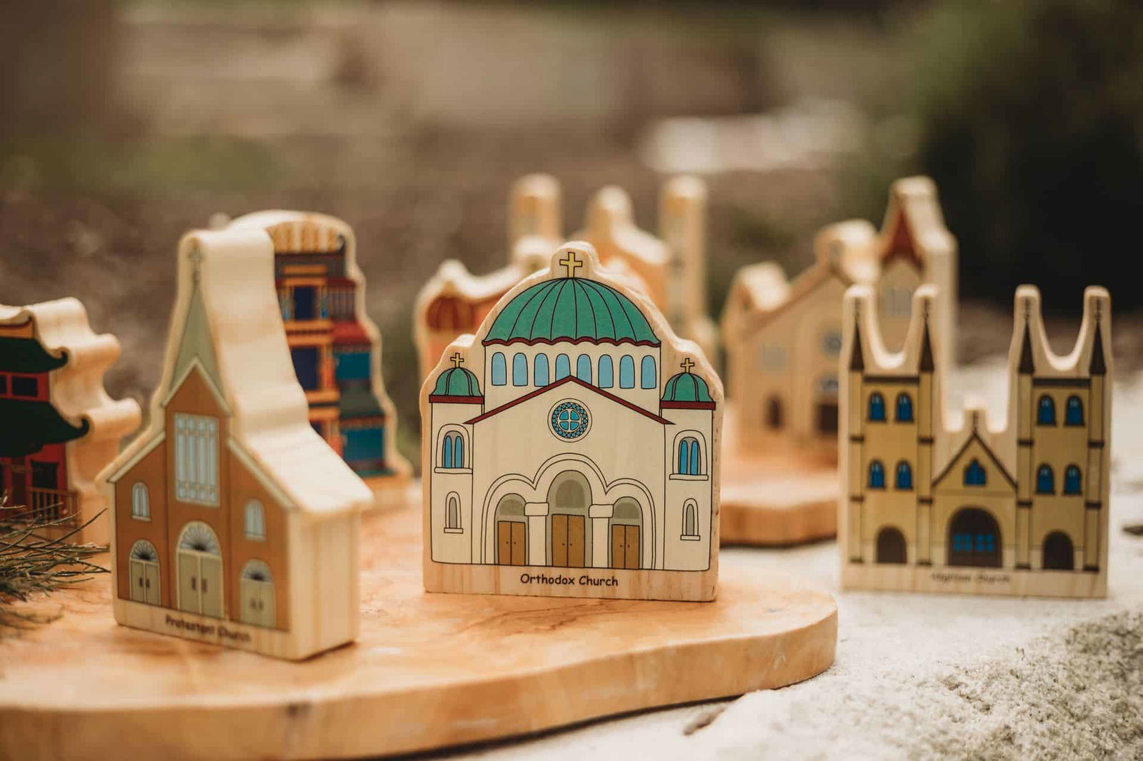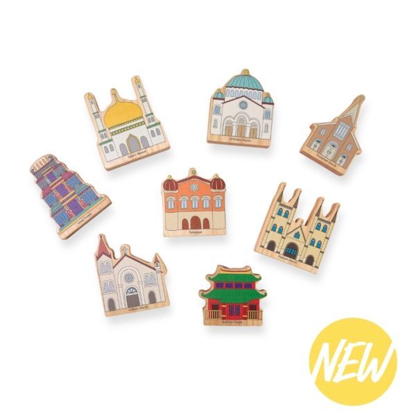 Die 8-teilige Sammlung, wobei das größte Stück Maße von 12 x 10,5 x 3 cm und das kleinste von 10,5 x 9 cm aufweist, wird aus nachhaltigem neuseeländischem FSC-zertifiziertem Kiefernholz gefertigt. Dieses kulturell anregende Set ist geeignet für Kinder ab 1 Jahr und hat Sicherheitstests erfolgreich für diese Altersgruppe bestanden, sodass Sie bedenkenlos gemeinsam mit Ihren Kindern die Welt der Religionen und Kulturen erkunden können.