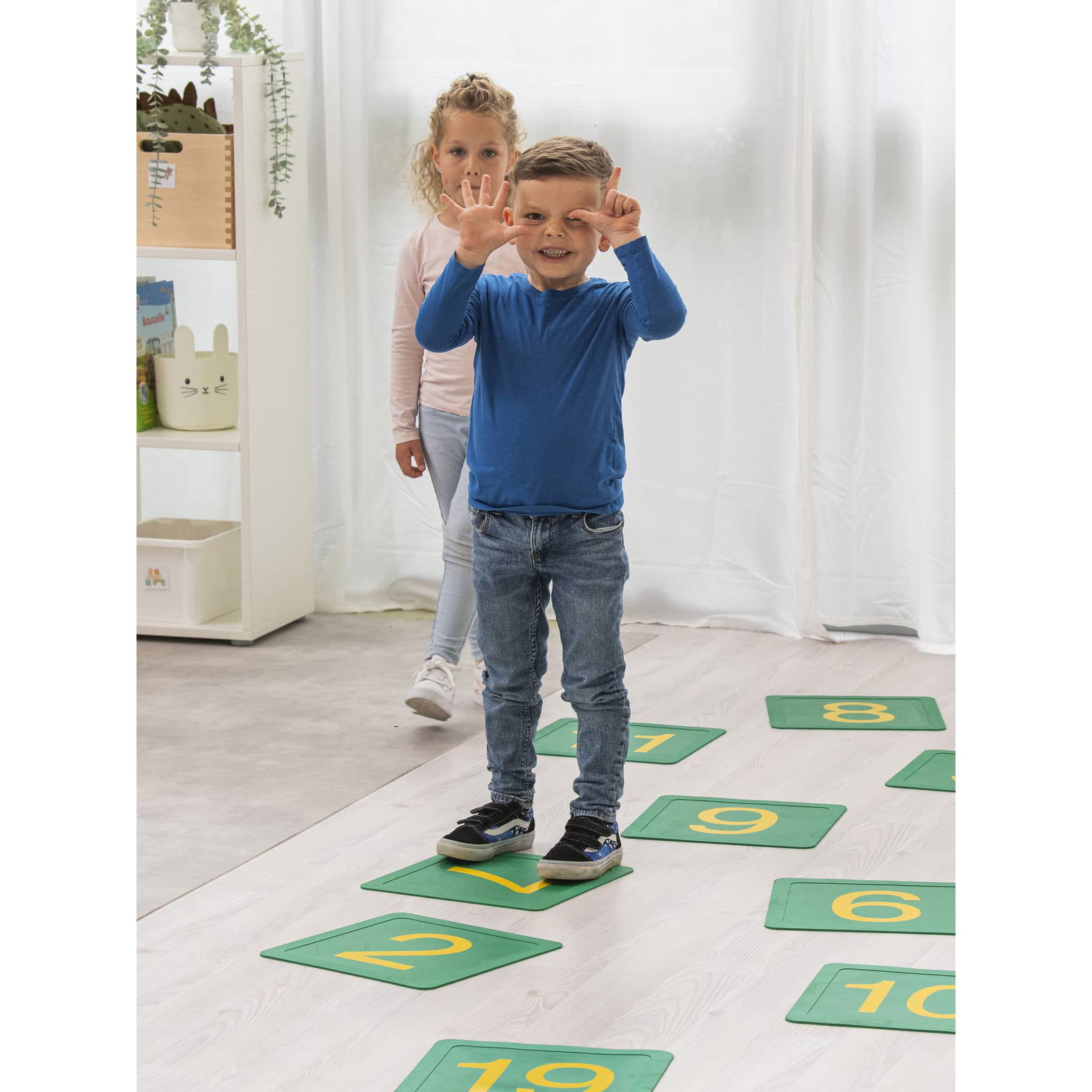 Dieses Set enthält Materialien, die speziell zur Förderung der Interaktion und des Lernens entwickelt wurden. Kinder können die Zahlenmatten von 0 bis 20 nutzen, um visuell zu verstehen, wie Zahlen zusammenhängen. Die Bohnensäckchen (von 1 bis 20) helfen beim Zählen und fördern die motorischen Fähigkeiten, während die nummerierten Kegel (0-10) die visuelle Wahrnehmung und Zielgenauigkeit schulen.