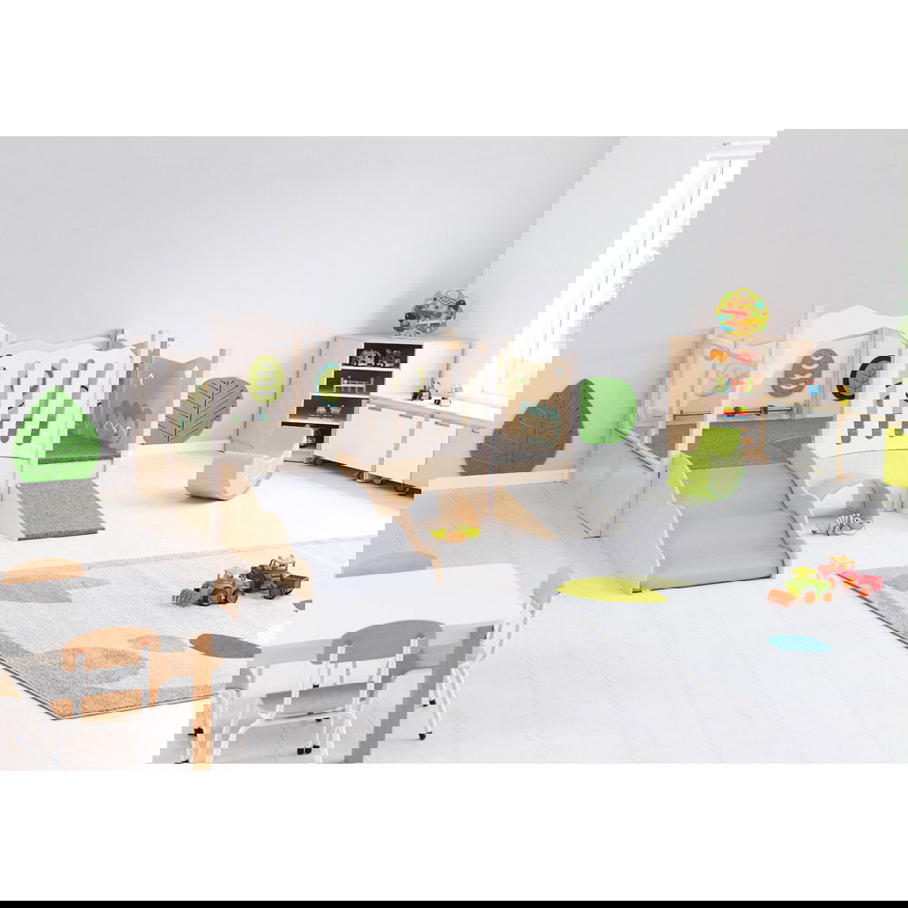 Die Spielecke Iris ist weit mehr als nur ein Möbelstück – sie ist eine Einladung an die Kleinsten, ihre Welt sicher und spielerisch zu erkunden. Speziell für den U3-Bereich und Kleinkinder konzipiert, bietet diese nach EN 1176 zertifizierte Landschaft einen geschützten Raum, der Neugier weckt und erste motorische Erfolge feiert. Die großzügige Hochebene ist so gestaltet, dass sich mehrere Kinder gleichzeitig darauf tummeln können, ohne sich eingeengt zu fühlen. Helle Farben, warmes Holz und durchdachte Details schaffen eine Atmosphäre der Geborgenheit, die sich harmonisch in jeden Gruppenraum einfügt.