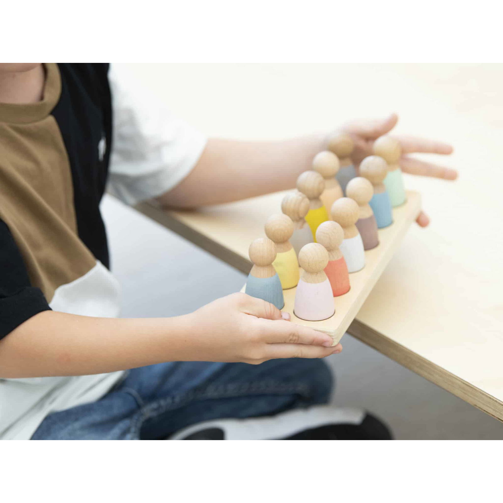 Durch die Verwendung der Holzleiste für die Aufbewahrung können die Figuren ganz einfach sortiert und transportiert werden. Dies macht das Set nicht nur ideal für den Gebrauch zu Hause, sondern auch für den Einsatz in Kitas oder Schulen.