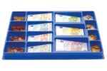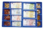 - Münzen: 10 x 2 €, 10 x 1 €, 10 x 0,50 €, 10 x 0,20 €, 10 x 0,10 € 20 x 0,05 €, 20 x 0,02 €, 20 x 0,01 €