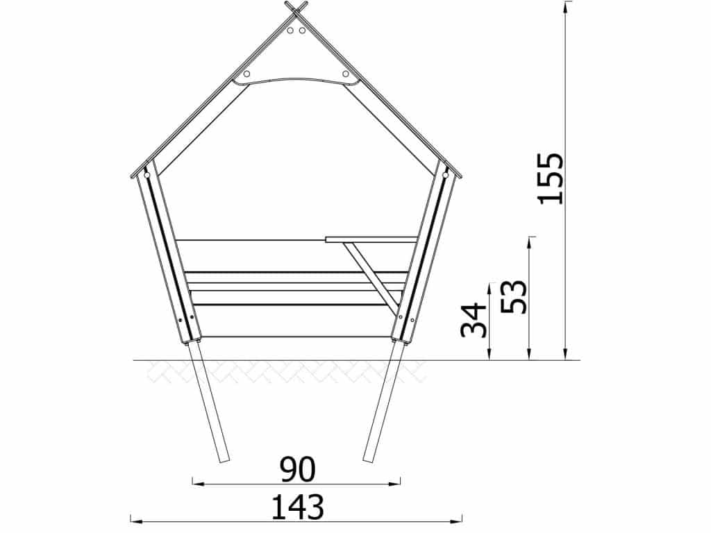 - Material: Konstruktion aus Vierkantstahlprofilen 90×90 mm, direkt im Boden befestigt. Dach aus Polyethylen-HDPE-Platten. Alle Fittings und Anschlüsse sind witterungs- und UV-beständig. Stahlelemente werden mit Zinkgrundierung und Pulverlackierung gegen Korrosion geschützt.