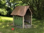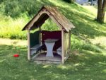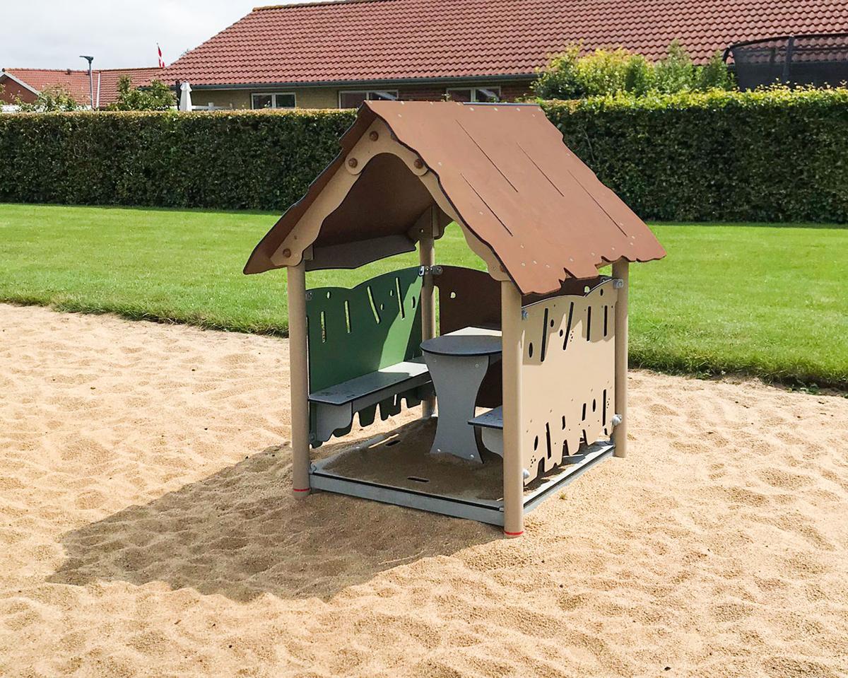 Ana ist ein Standard-Spielhaus mit zwei Bänken und einem Tisch.