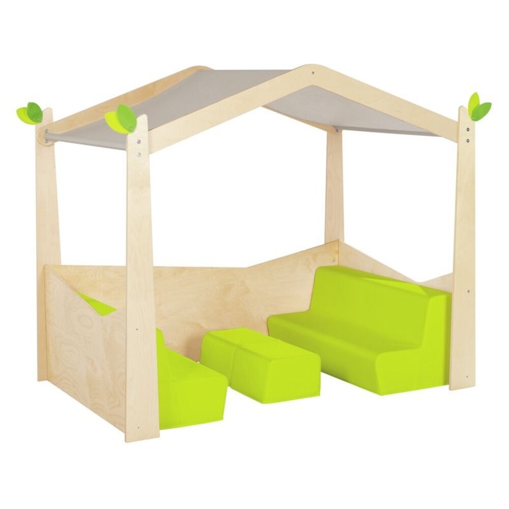 - Einfache Beaufsichtigung: Die offene Gestaltung mit Fenstern und einem luftigen Stoffdach erlaubt eine unaufdringliche, aber sichere Kontrolle durch Erwachsene.