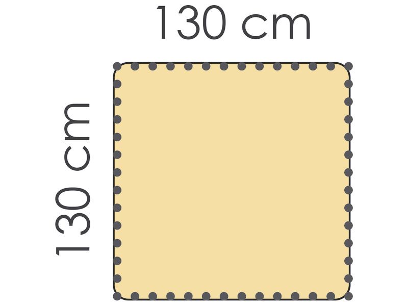 - Produktmaße: Bodenmaß : L: 131 cm – B: 130 cm. Sicherheitszone: L: 431 cm – B: 430 cm (nicht inbegriffen). Erforderliche Fallhöhe: 0,19 m: Dämpfungsfläche: 15 m² (nicht verpflichtend).