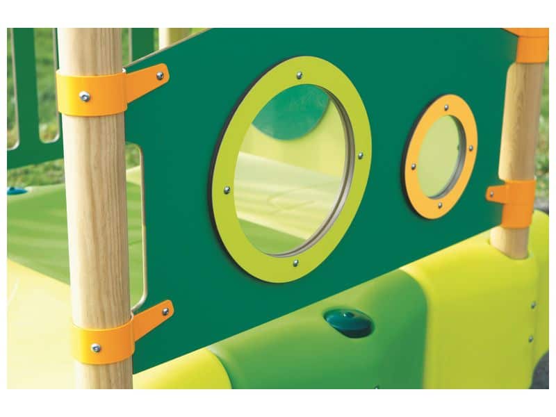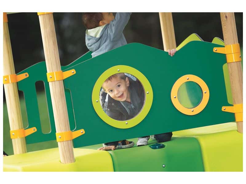 Serie GAYA – Diese Spielmodule für den Außenbereich wurden geschaffen, um Spielflächen zu schaffen, die die Kleinsten in ein abwechslungsreiches Universum tauchen: Abenteuer und der Fantasie sind keine Grenzen gesetzt. Unter zwingender Aufsicht mindestens eines Erwachsenen werden die Kinder bei Spiel und Spaß beim Klettern, Rutschen oder Kriechen ihre physischen Fähigkeiten entfalten und voller Neugier beim Entdecken der durchsichtigen Bullaugen ihr Gefühl für Höhe, für das Eingehen von Gefahren (Treppe, Rutschbahn) oder auch ihren Orientierungssinn (Labyrinth) entwickeln.