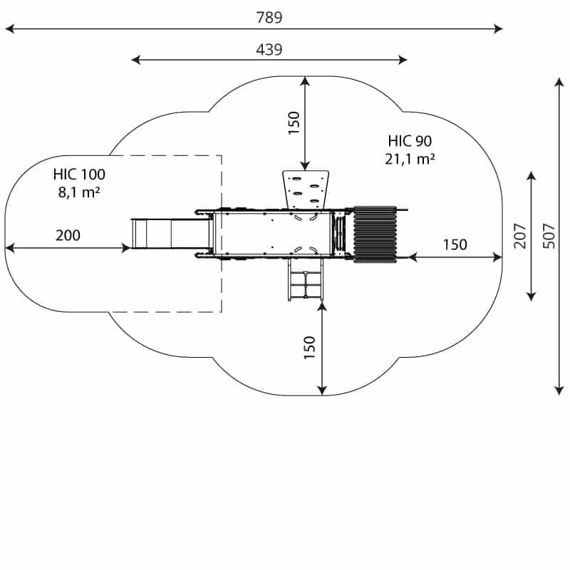 - Plattformhöhe der Rutsche: 90 cm