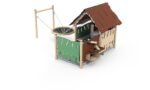- Ausstattung: 1 Spielhaus mit Veranda, 1 Außenküche, 3 Bänke, 1 Tisch, 1 Nestschaukel