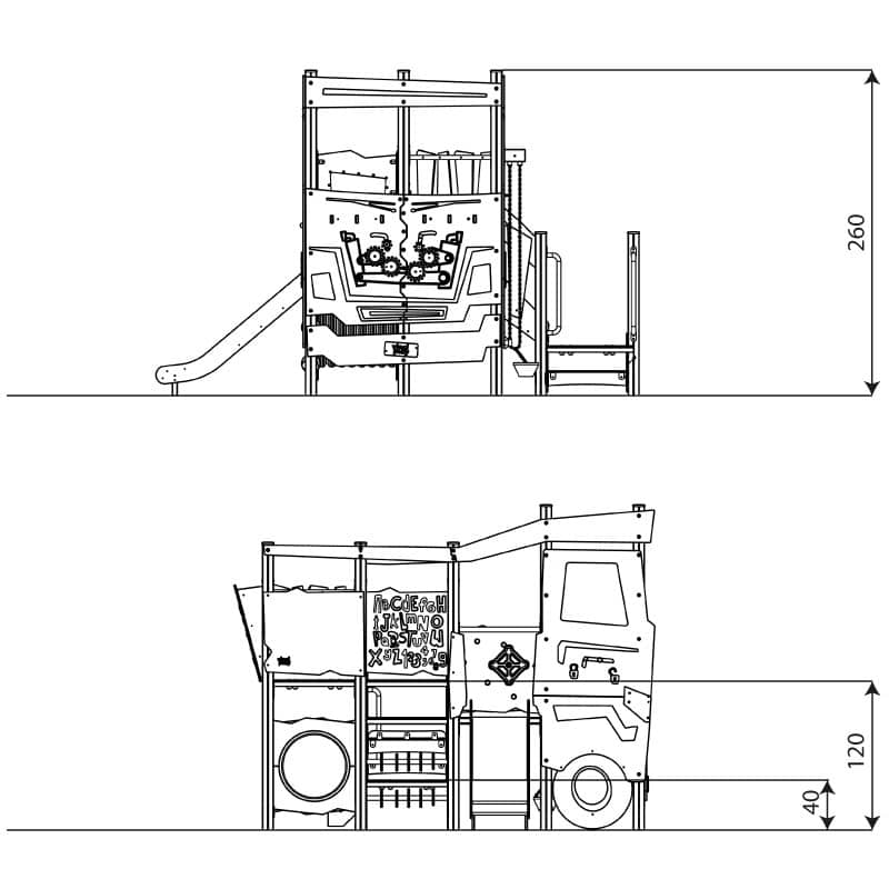 - Kreative Spielmöglichkeiten: Der Spielhaus LKW bietet den Kindern nicht nur einen Platz zum Spielen, sondern auch eine aufregende Kulisse für rollenspielbasierte Aktivitäten. Die integrierte Rutsche und verschiedene Plattformen fördern die motorische Entwicklung und den Spielspaß.