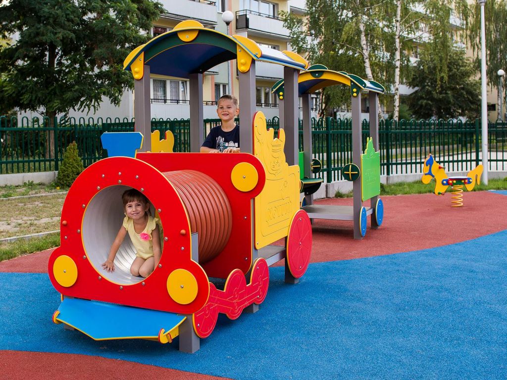Dieser Zug nimmt die Kinder mit auf eine Reise in das Land der Märchen. Bunte Lokomotiven und Waggons sind ein Traumort für Spaß und Erholung.