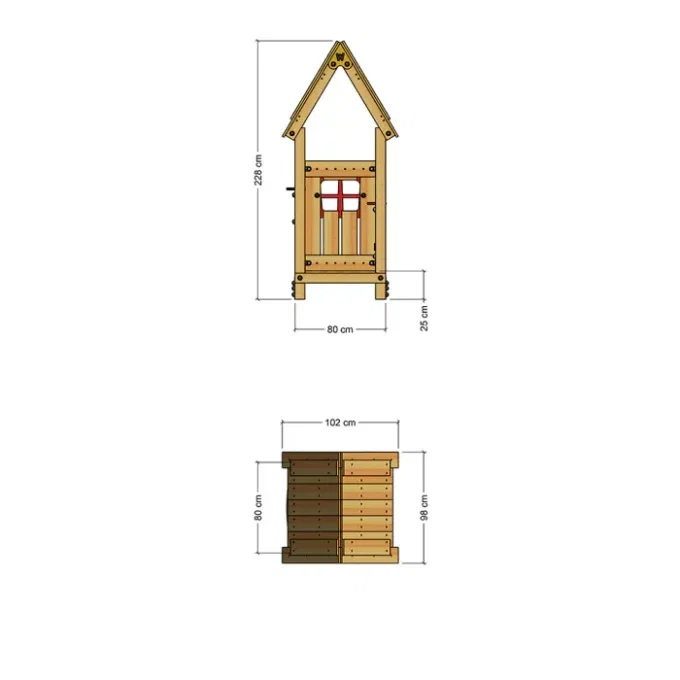 Bei der Entwicklung unserer Spielgeräte steht die Sicherheit der Kinder an erster Stelle. Das Wickey PRO Ranch-Spielhaus wird aus hochwertigem, imprägniertem Massivholz gefertigt, das für maximale Langlebigkeit sorgt. Zusätzlich verwenden wir farbige HDPE-Platten, die bis zu 80 % aus recyceltem Material bestehen und vandalismusbeständig sind. Damit bieten Sie nicht nur einen sicheren Spielort, sondern leisten auch Ihren Beitrag zum Umweltschutz. Qualität „Designed in Germany“ garantiert, dass Eltern sicher sein können, dass ihre Kinder in einem geschützten Raum spielen.