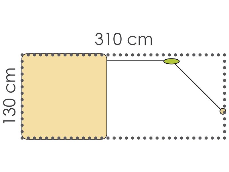 • Produktmaße: Bodenmaß : L: 310 cm – B: 131 cm. Sicherheitszone: L: 606 cm – B: 431 cm (nicht inbegriffen). erforderliche Oberfläche: 17 m² (nicht verpflichtend).