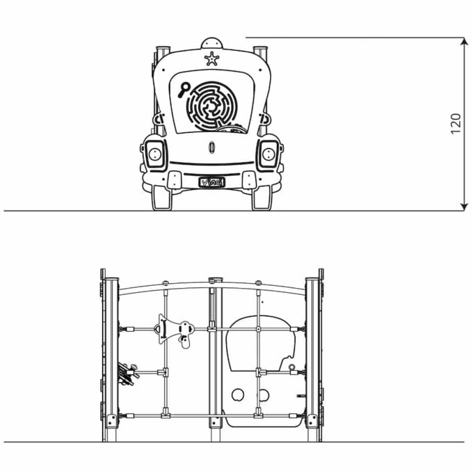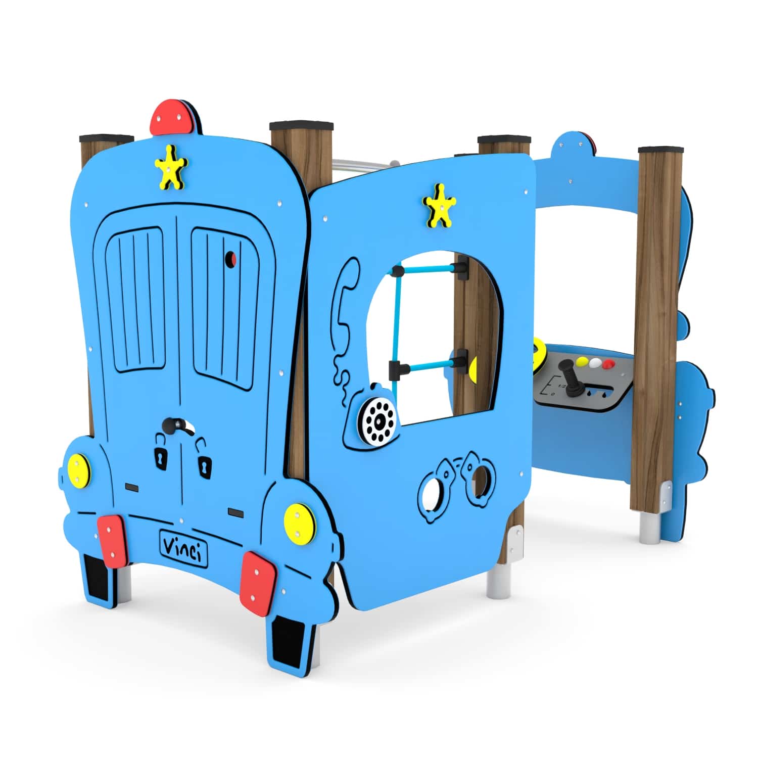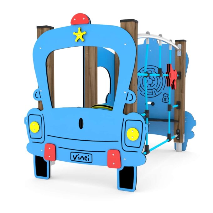 Klettergerüst Polizeiauto mit Kletternetz und Armaturenbrett – WOODEN WD1430