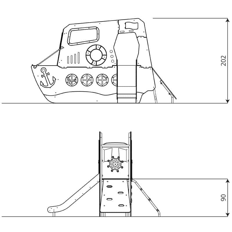 Technische Daten Spielhaus Schiff mit Rutsche und Kletterelementen TOPICCO 3101 von Vinci Play