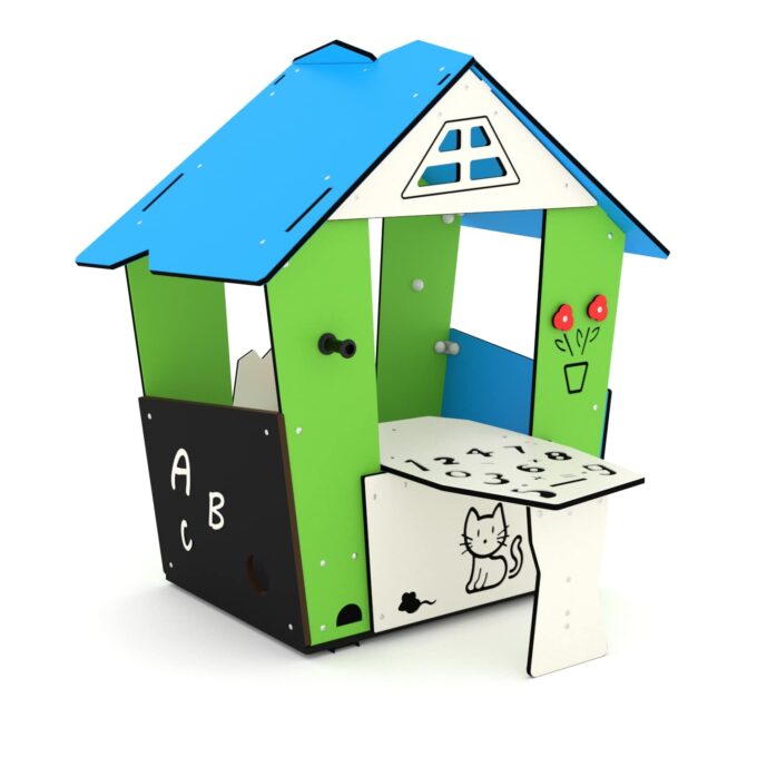 - Vielfältige Spielmöglichkeiten: Das Spielhaus bietet nicht nur Platz zum Spielen und Entspannen, sondern auch ein Zeichenbrett, das kreativen Ausdruck fördert. Die bunten Elemente aus witterungsbeständiger HDPE-Platte regen die Fantasie an und schaffen eine einladende Atmosphäre für Rollenspiele und Abenteuer.