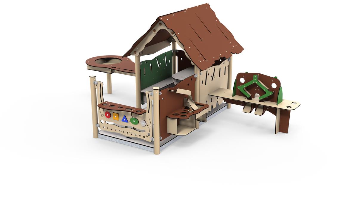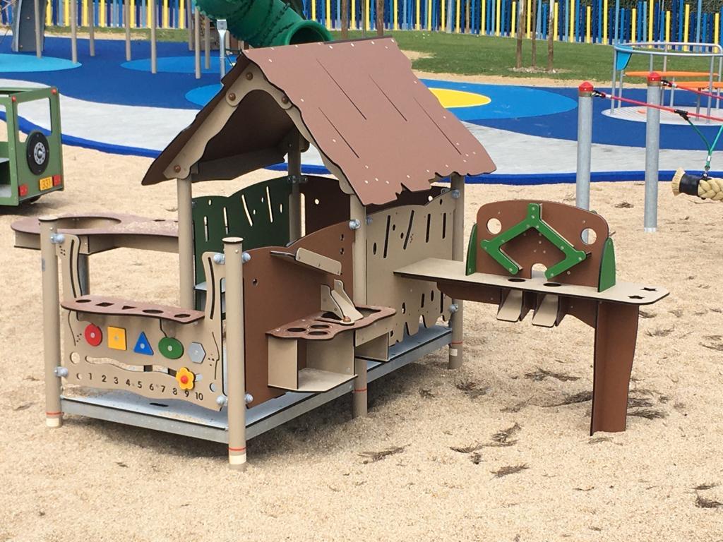 - Ausstattung: 1 Spielhaus mit Veranda, 1 Kioskwand, 1 Außenküche, 1 Matschtisch, 1 Sandmaschine, 2 Innenbänke, 1 Tisch