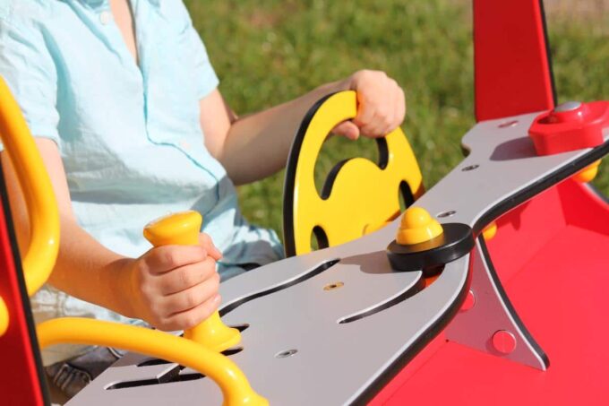 Spielhaus Traktor in Rot – LEDON Originals – 1710-11 für Kindergarten- Außenanlagen