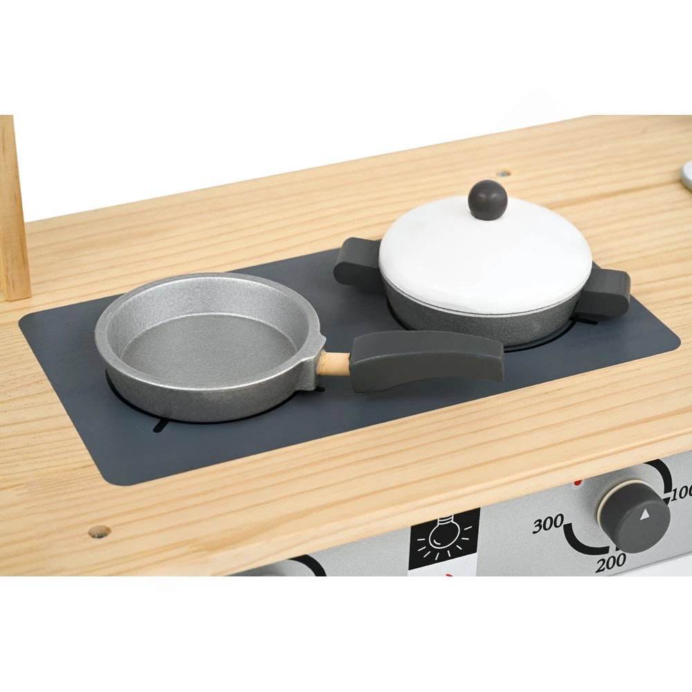 Das Drehen der Knöpfe, das Umrühren im Topf oder das Platzieren der Küchenutensilien an den Haken – all diese Handlungen schulen spielerisch die Hand-Auge-Koordination und die Feinmotorik. Kinder lernen, ihre Bewegungen zu kontrollieren und ihre Geschicklichkeit zu verbessern. - Realistisches Spielgefühl