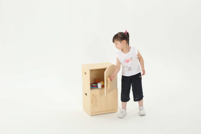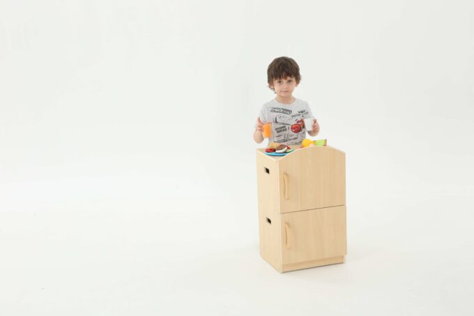 Spielküche „Owlaf“ für Krippenkinder – Kühlschrank für Kitas & Krippen